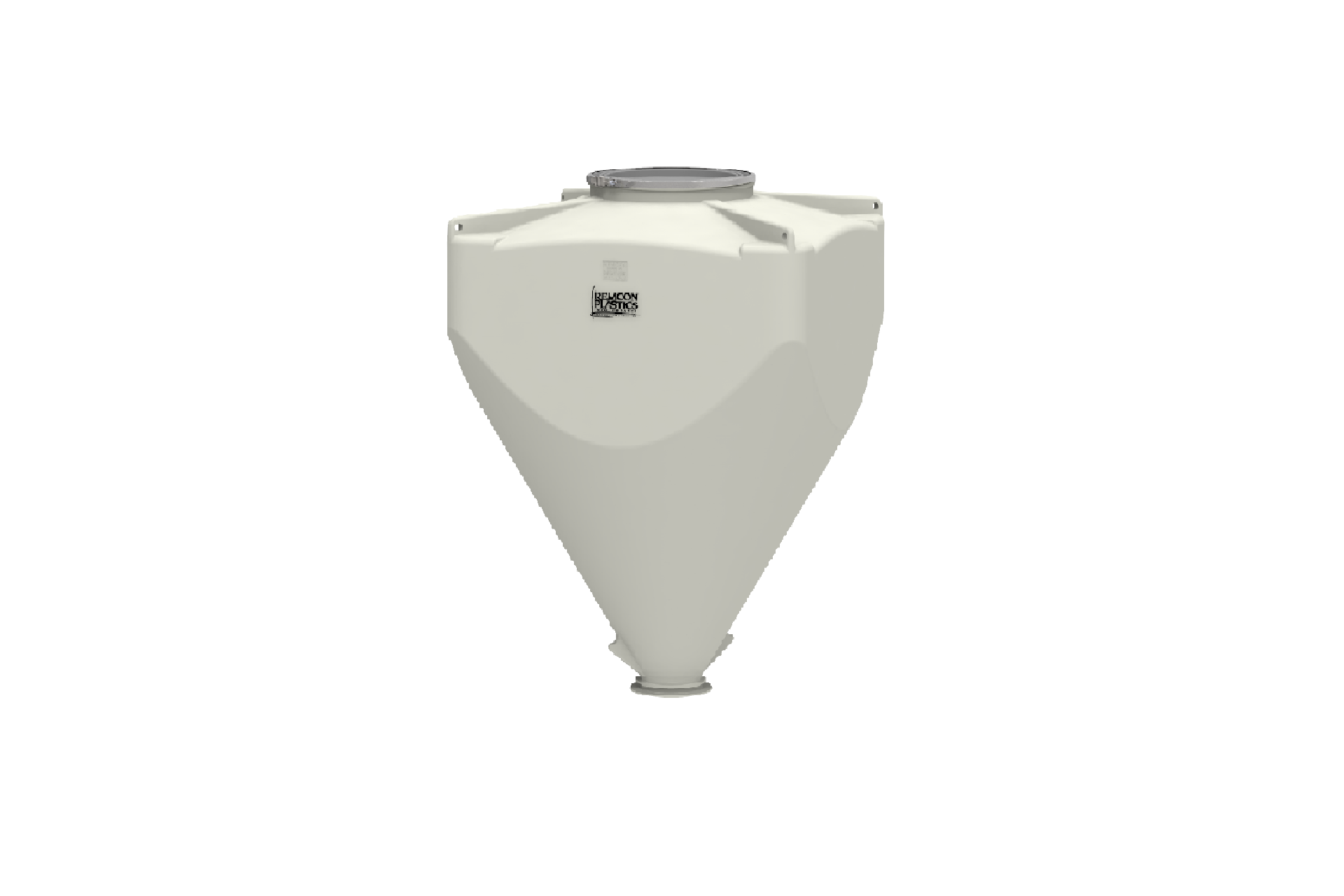 Reading, PA — Remcon Plastics, Inc., today, announced the launch of its state of the art, eco-friendly, dry bulk mass flow reusable polyethylene hopper. This heavy duty unit has been designed specifically for use with fine particles and low bulk density powders. The initial offering is a two-piece design featuring a 60° cone and a 45 cubic foot capacity. Molded from FDA approved virgin polyethylene the DBH-60/45 is sanitary for food and pharmaceutical applications yet rugged enough for the most demanding industrial challenges. Design features allow the DBH-60/45 to accommodate a variety of valves and discharge configurations. Utilizing a patent pending interlock system the hopper and base can be lifted by crane as one piece or can be set up in a manner where a crane can easily lift the hopper out of the base for sanitary discharge or in areas with limited headroom.